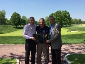 Bob Yedowitz (center) of Emil Yedowitz Florist LLC in Yonkers, NY, receives an FTD 75-year anniversary recognition plaque from (left to right) FTD Florist EVP Tom Moeller and FTD Regional Vice President Jim Weedon.