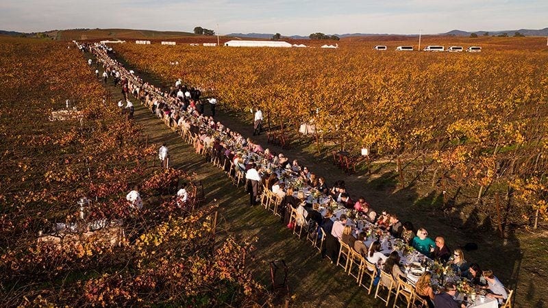 Frye said she was amazed at how quickly — and beautifully — the dinner came together: The group needed 63 tables, which were set up, end-to-end, to run along the Napa and Sonoma county line.