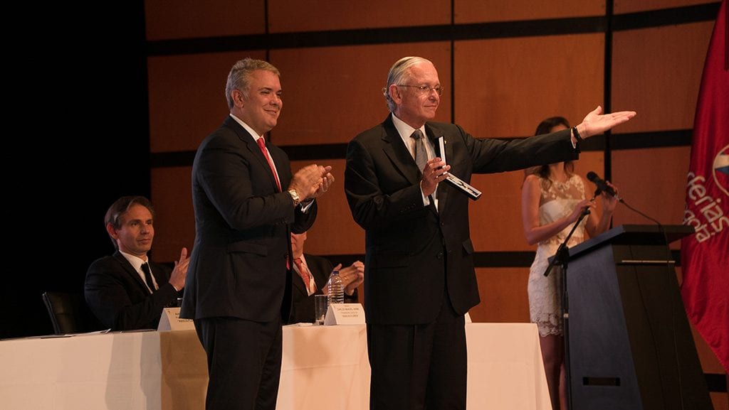 “I have no doubt that the more progress is made in this sector, the more economic equality can be achieved in the places where it operates,” said Duque. He presented a plaque to Lucie de Velez, the founder of a social program called Peace in the Family, created 20 years ago with the goal of combatting and preventing domestic violence. The program, which gives training in skills to resolve conflict, originated with support from flower growers but has spread to other economic sectors. “It has changed the way more than 50,000 Colombians live,” said Duque: “peace in Colombia, starting from our homes.”