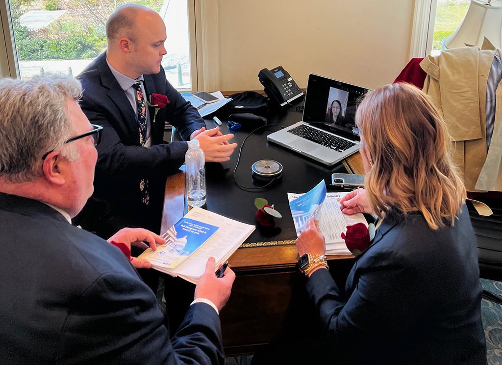 Ryan O’Neil, PFCI, of Curate Floral Software; Rod Crittenden of the Great Lakes Floral Association; and Jennifer Barnard, AAF, of Tillie’s Flower Shop in Wichita, Kansas, conduct a virtual congressional appointment earlier this year in which they asked for additional funding for FNRI.