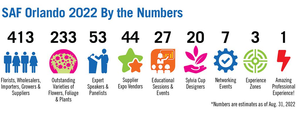 She is one of 413 floral professionals from 41 states and six countries who will gather in Orlando Sept. 6 to 8 for SAF Orlando 2022.