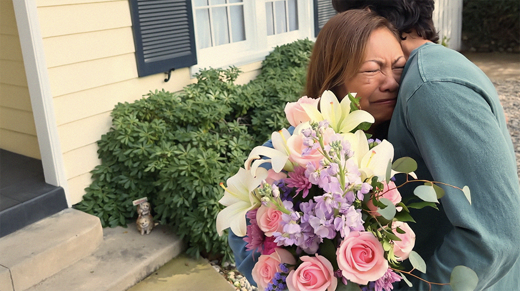 The 65-second spot opens with a closeup of a mother cradling her newborn before rapidly cycling through nearly a dozen landmark events, including first steps, the first day of school, first heartbreak, graduation, marriage, and pregnancy. The campaign captures the deep sense of pride and love mothers feel watching their children grow, as well as the longing to relive those memories. It concludes with a tearful embrace of a mother and her adult son who’s just delivered a floral arrangement. The tagline: “This Mother’s Day, let her know you never left.”