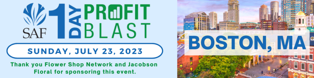 Retailers will have the chance to soak in new strategies to inject into their business this summer at SAF’s 1-Day Profit Blast in Boston, on July 23. The event is co-sponsored by Jacobson Wholesale and Flower Shop Network.