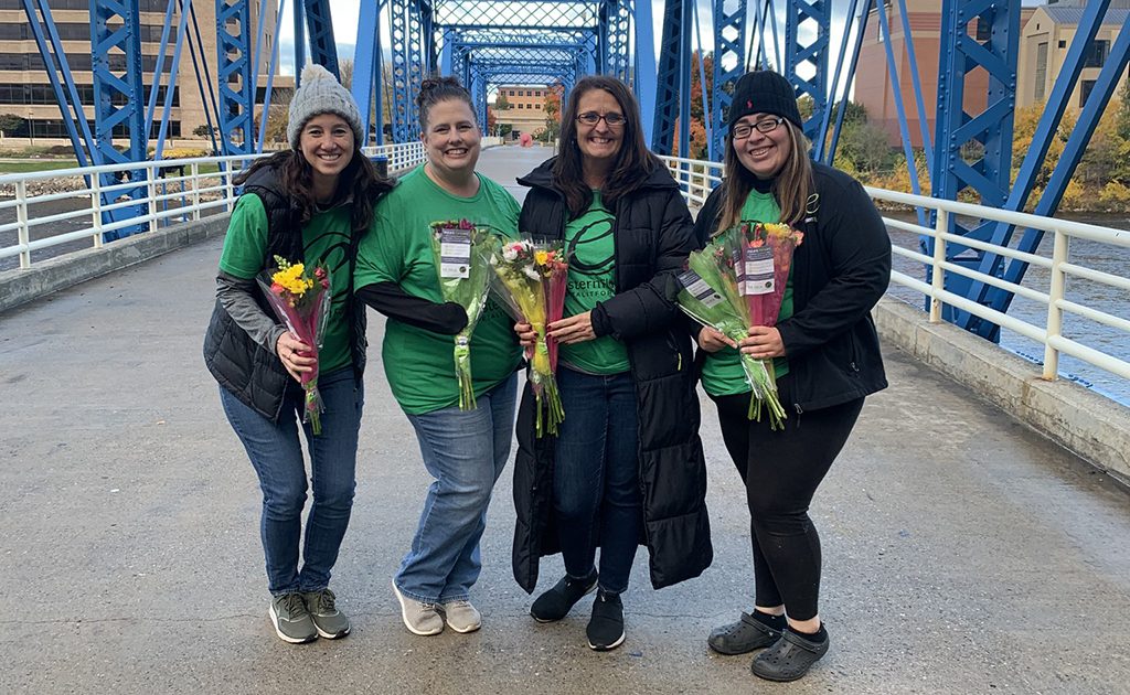 “Not only is it always a great opportunity to partner with such an amazing foundation, but it also helps to create awareness of what we’re doing and gives us more manpower to be able to hand out more bouquets around Grand Rapids,” says Brenda Sterk, Eastern Floral’s business analyst and production supervisor. The partnership also highlights the influence flowers have on mental health, she says.