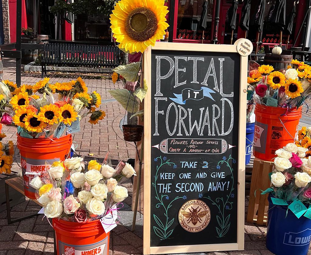 Bangor Floral in Bangor, Maine distributed hundreds of bouquets last year during the Petal It Forward flower giveaway. It was a resounding success, not only drawing crowds of happy recipients, but also the attention of four local television stations, says owner Joseph Langlois.