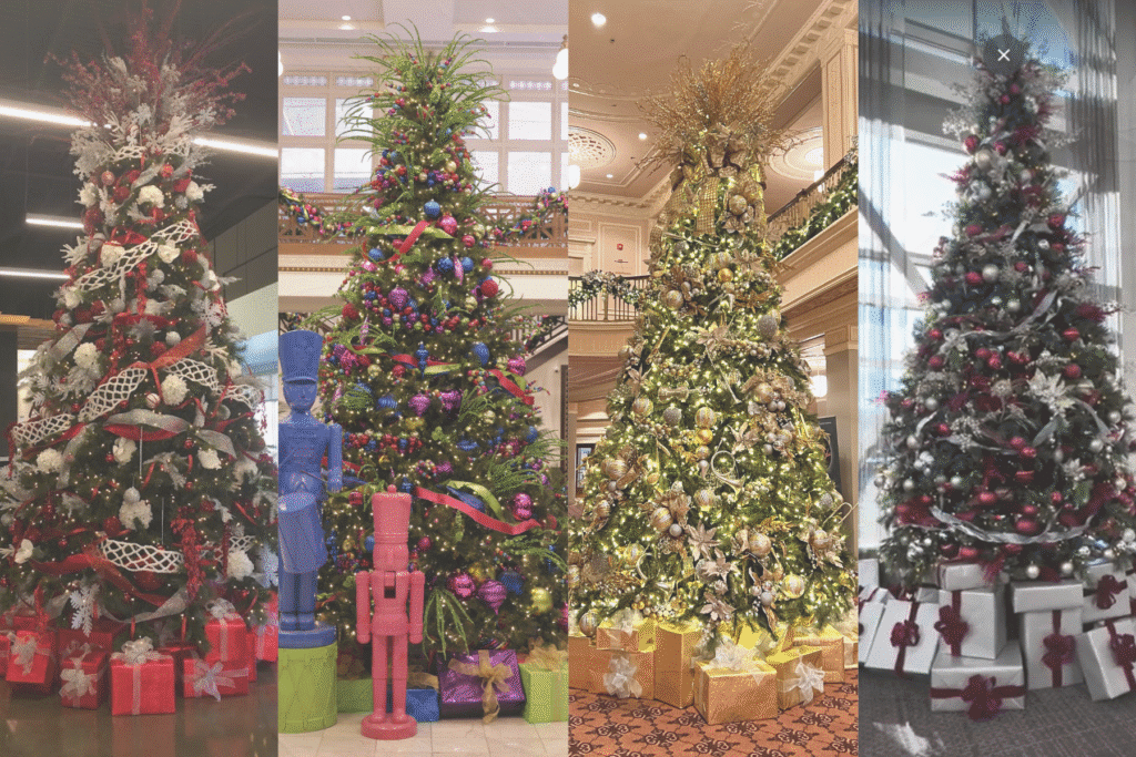 A selection of Christmas trees designed by McNamara Florist for its commercial clients. Owner Toomie Farris, AAF, AIFD, says commercial installs are more efficient and profitable when florists choose the right jobs, stay organized and charge strategically.