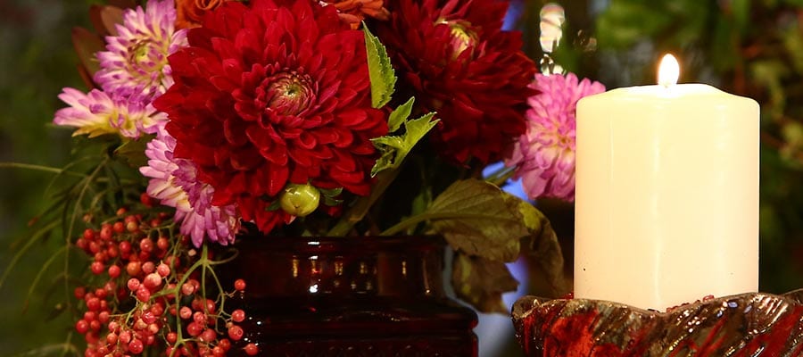 - Arrangements and centerpieces in robust hues of purple and burgundy will create a sensuous, lush setting for dinners, both intimate and large.