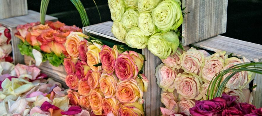- Or ask your florist to make colorful arrangements in fun containers such as baskets or bottles.