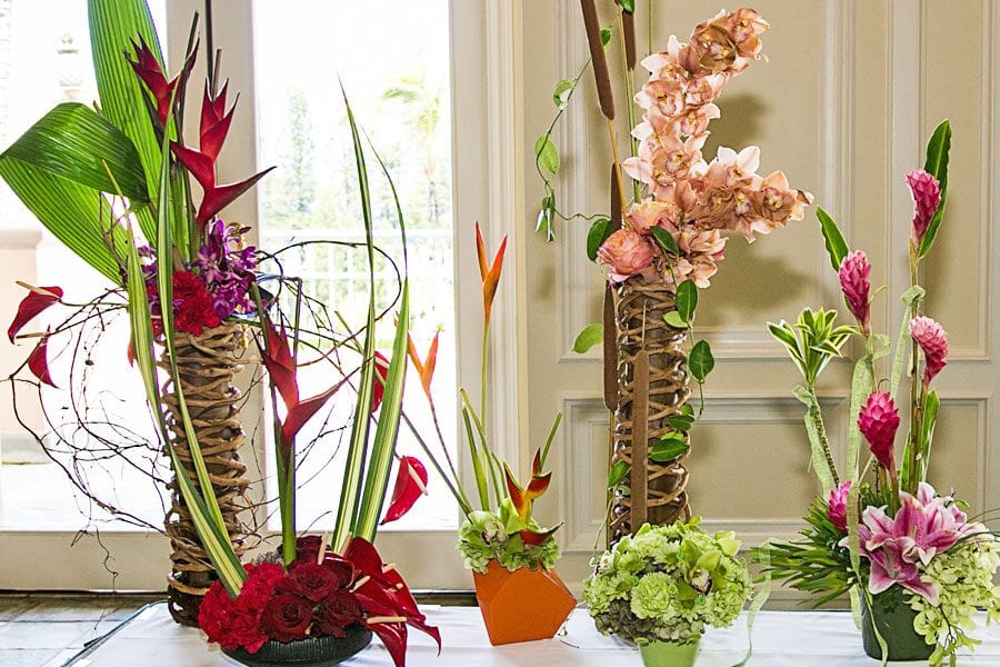 - You can even use hollowed pineapples or coconuts as festive floral containers.
