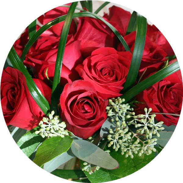- Deep reds (roses, carnations and soft greens). Add accents of vines, mosses and a bottle of wine.