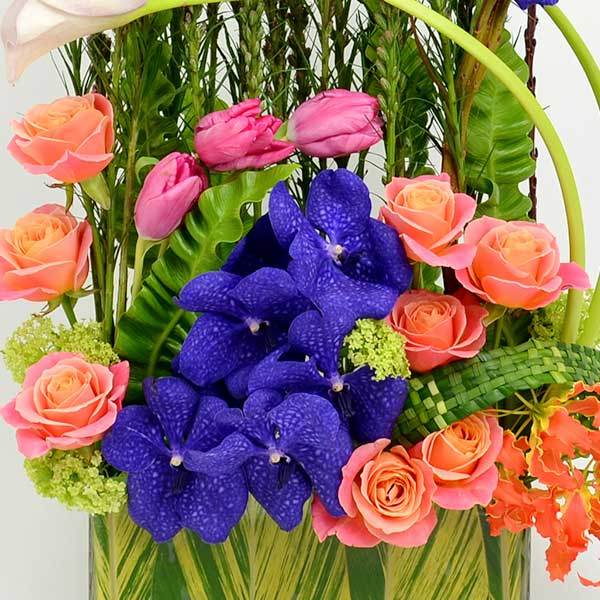 - Arrangements with braided foliages accents or lacey bear grass accents