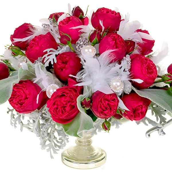 There are several ways to add a personal touch to the classic red roses. There is a plethora of red shades and textures available – from deep burgundy to pert reds with orange undertones. Ask your florist to create a unique arrangement – you can even bring in your favorite container from home for a custom-designed arrangement.