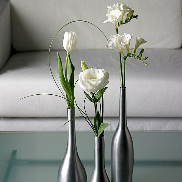 - Place bud vases in high traffic home areas – with even just a few flowers. Any decorative glass from the kitchen will do!