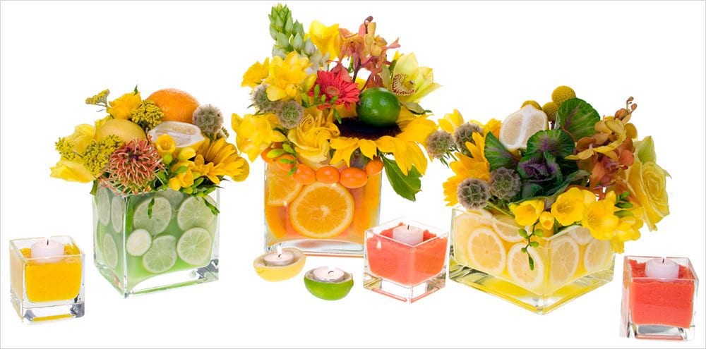 - Blending with the casual atmosphere of modern home entertaining, this centerpiece is sure to dazzle guests during afternoon brunch or informal dinners. The candles provide a refreshing combination using the elegance of flowers with the ambience of candlelight.