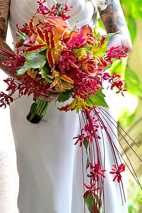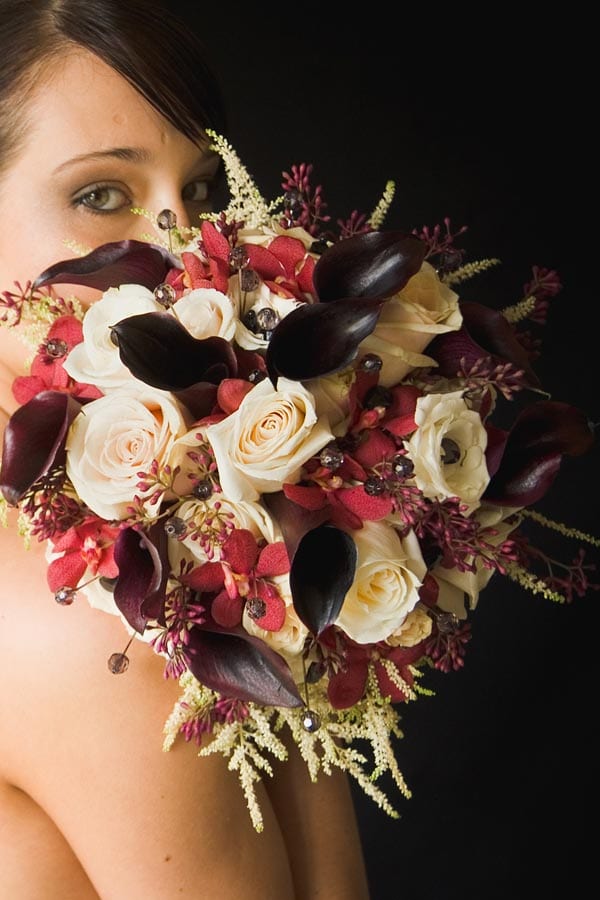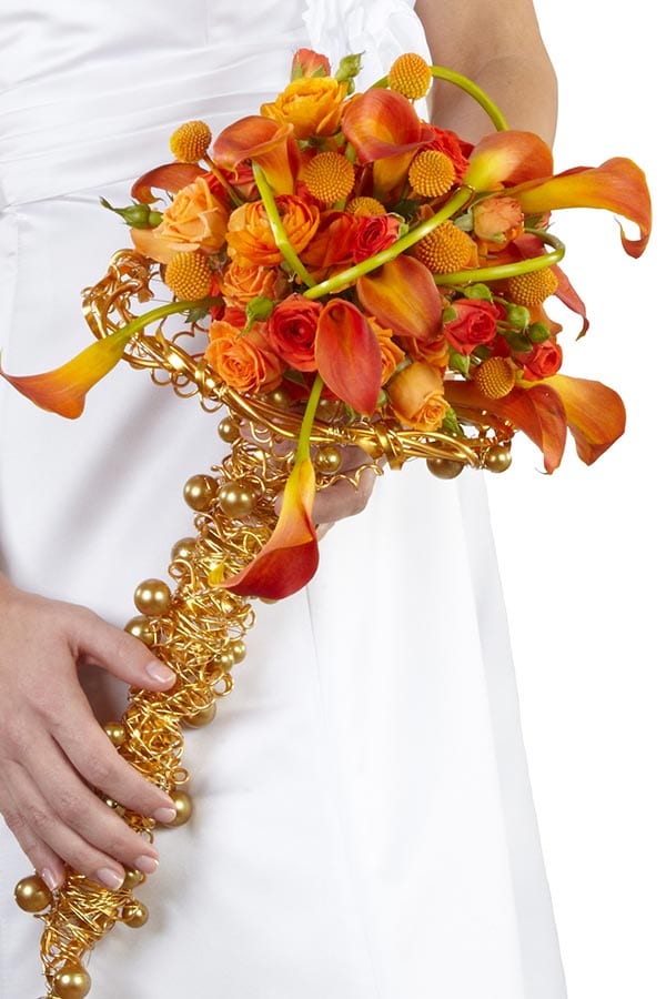 These bouquets are inspired by unconventional ideas, styles and patterns and are designed with no specific geometric form. They are usually created with flowers that have definite form and add character to a bouquet (such as calla lilies, orchids and anthuriums). Contemporary bouquets represent the individuality of the bride and are perfect for a sophisticated, cosmopolitan style wedding. They’re simplistic but have the added grace of asymmetrical design.
